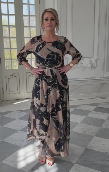 Sukienka z okrągłym dekoltem i rękawami średniej długości w marmurkowy wzór