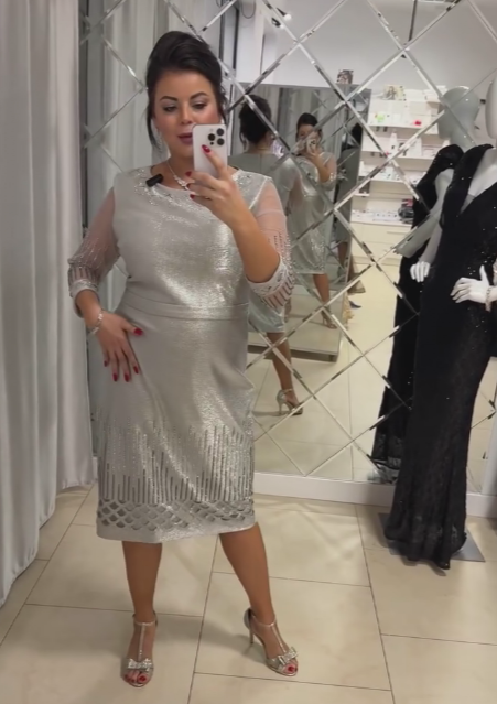 Sukienka patchworkowa z cekinami i dekoltem w serek