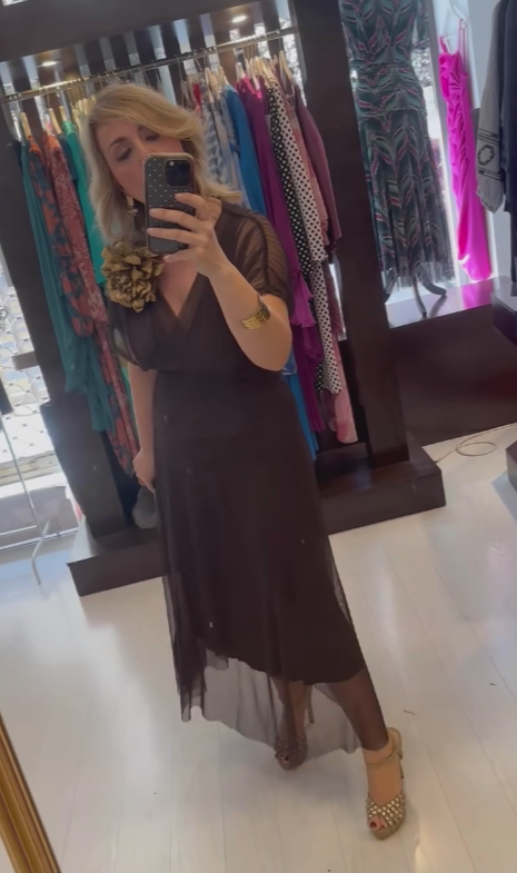 Sukienka kopertowa z głębokim dekoltem w serek, półprzezroczysta siateczka, krótkie rękawy