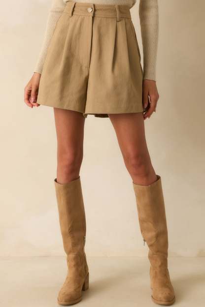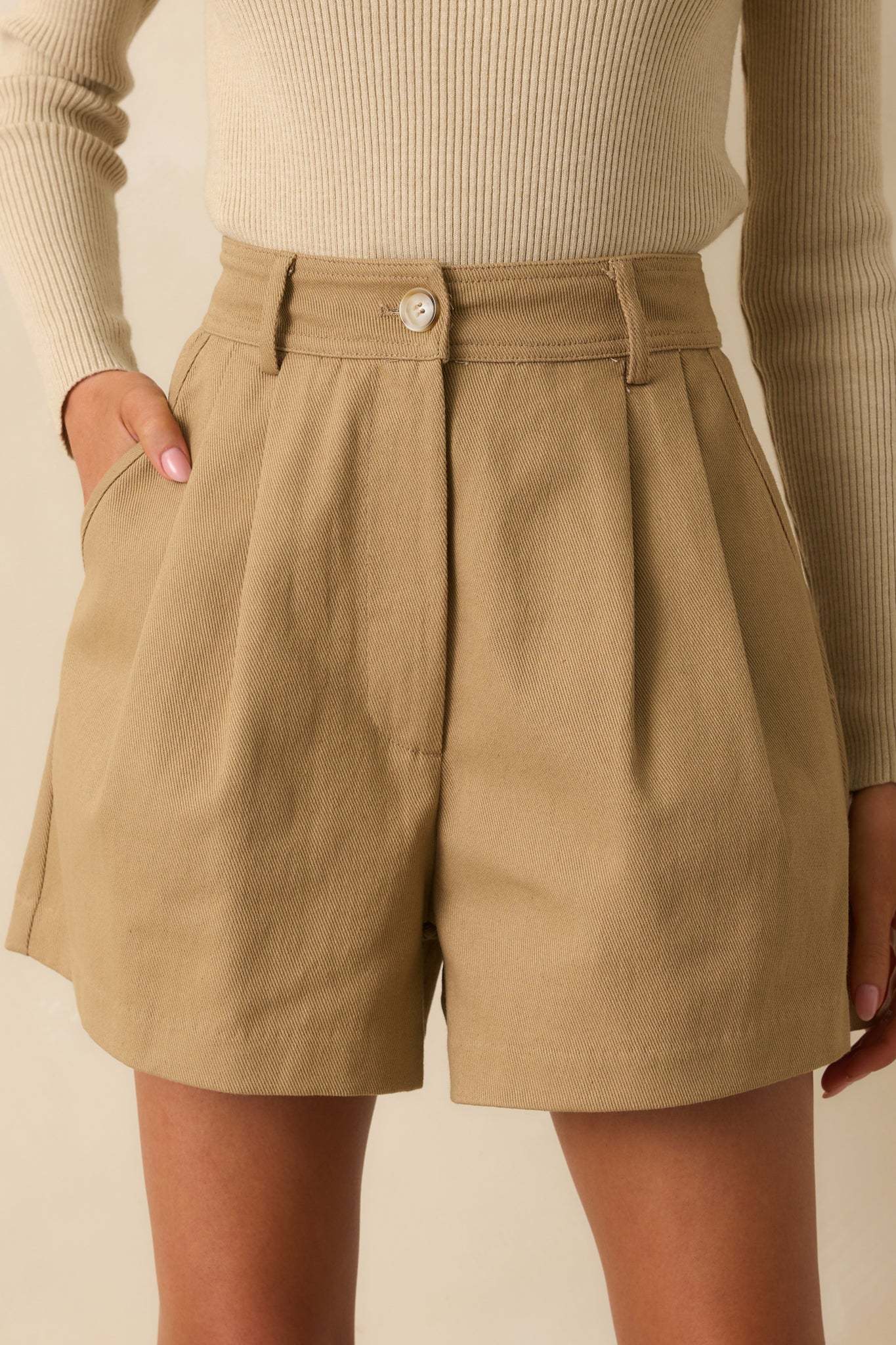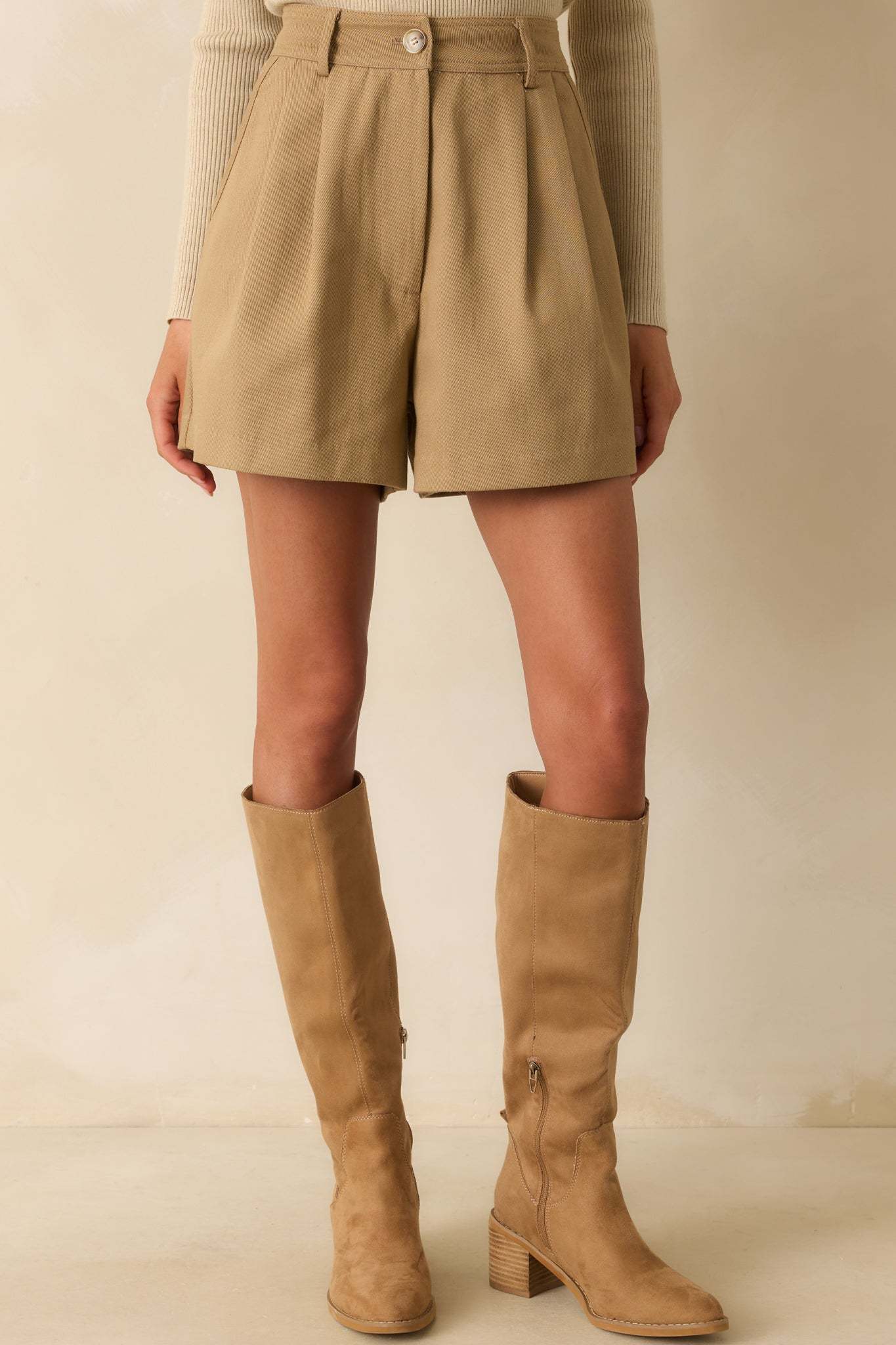 The Here We Go Again Tan Rayon Pleated High Waisted Shorts bring back a familiar favorite, a versatile style that you’ll find yourself reaching for time and time again. These tan shorts feature a 100% rayon fabric, high rise waist, front pleats, belt loops, functional side pockets, functional back patch pockets, and a front button-zip closure.