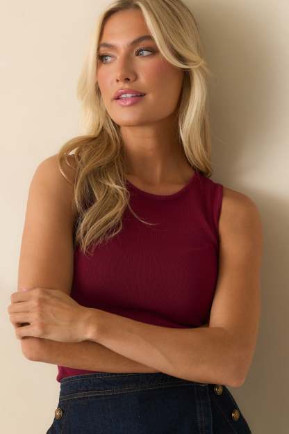 One Of Those Days Merlot Red Rib Knit Tank Top