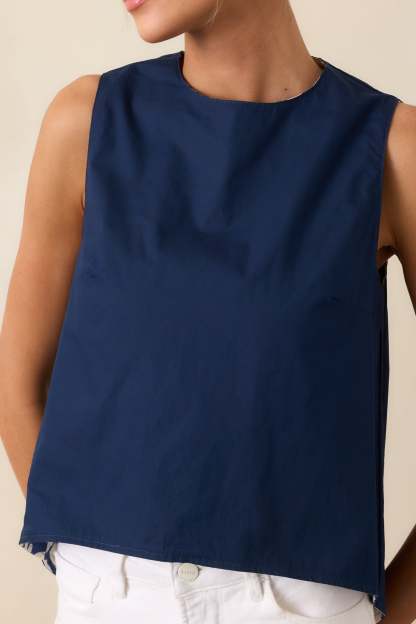 The Prosperina Marley Navy Floral Print Cotton Reversible Top brings a sense of easy versatility to your wardrobe. It’s the kind of piece that adapts effortlessly to whatever the day calls for. This top features an exclusive Prosperina Navy Mod Blossom floral print on one side, a solid navy fabric on the other side, round neckline, back keyhole button closure, sleeveless design, and a scoop bottom hem with a longer back.
