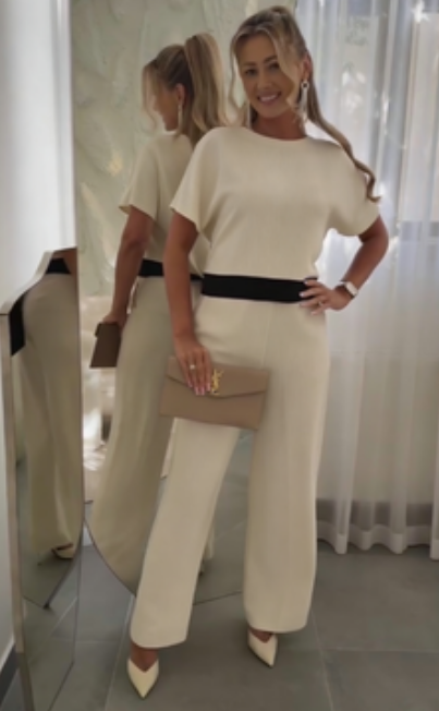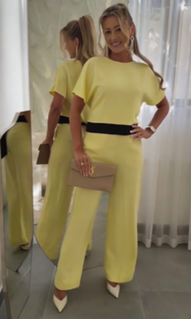 - Szerokie spodnie maxi z wysokim stanem tworzą elegancką, wydłużającą sylwetkę linię.