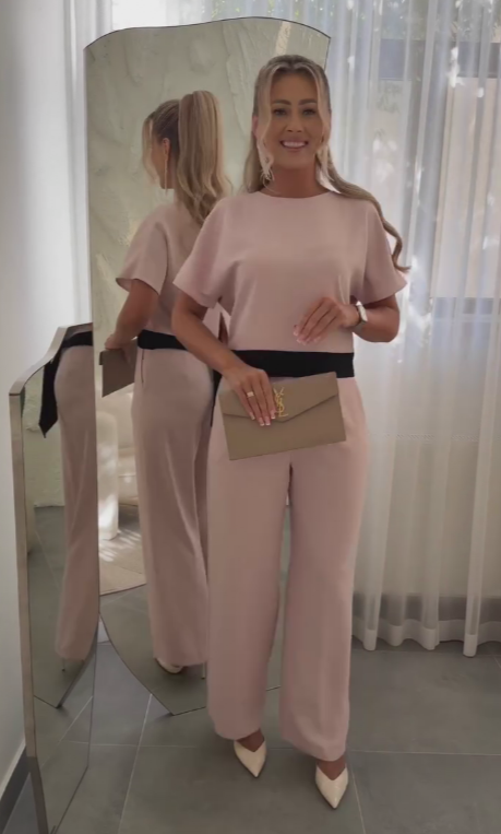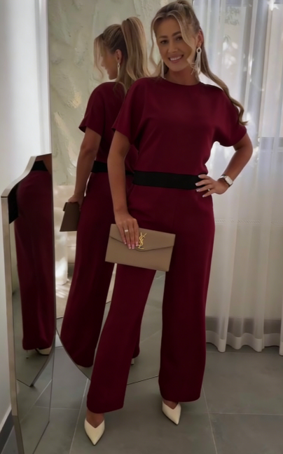 Doskonały wybór na spotkania biznesowe, obiady z przyjaciółmi, wesela lub inne formalne okazje! Ten różowy kombinezon