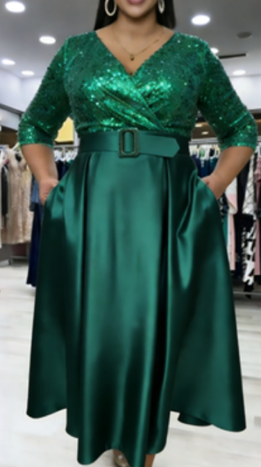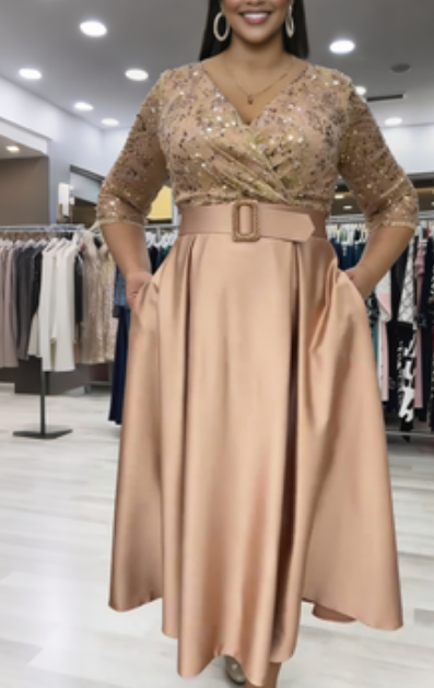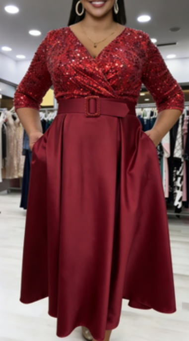 Dla każdej sylwetki – styl i komfort: Sukienka łączy błysk i elegancję z swobodą ruchów – doskonała dla kobiet, które chcą wyglądać świetnie, nie rezygnując z komfortu.