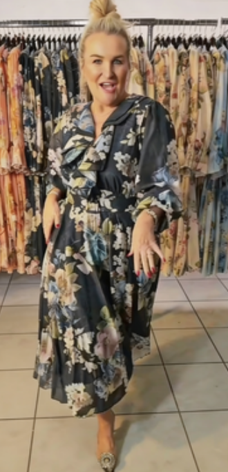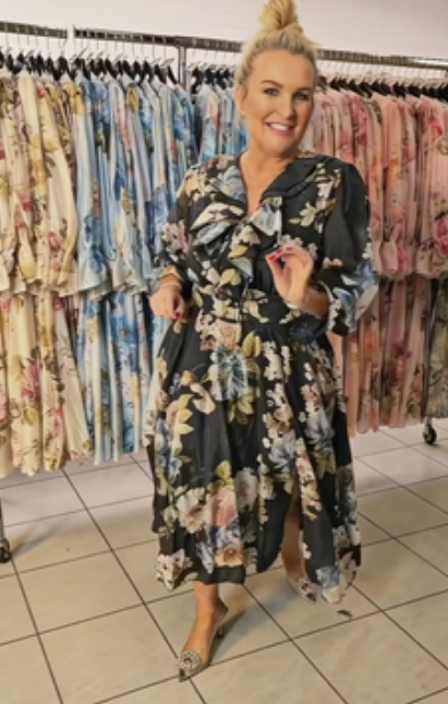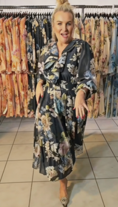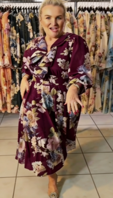🎁Ostatnia oferta specjalna -49% zniżki🎁 Sukienka midi z falbanką i kwiatowym nadrukiem