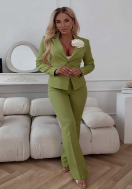 Kombinezon ze spodniami rozszerzanymi w talii i zdobionymi kwiatami 3D