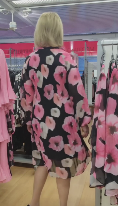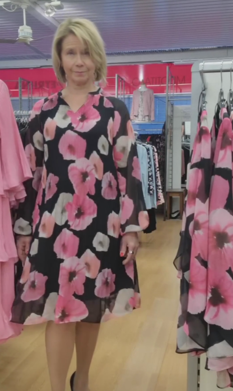Sukienka midi z dużym kwiatowym nadrukiem i rękawami o długości 3/4