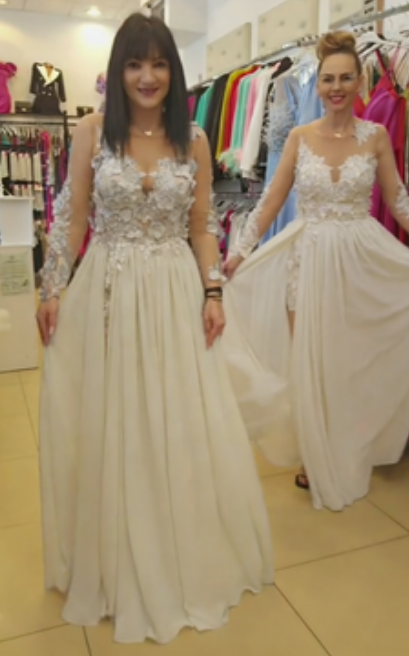 Długa sukienka z szyfonu z koronkowymi aplikacjami