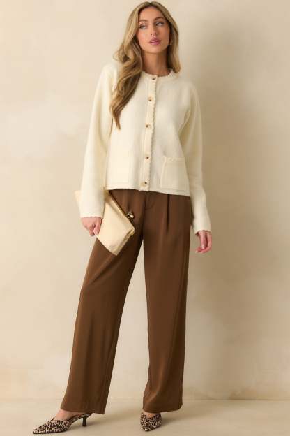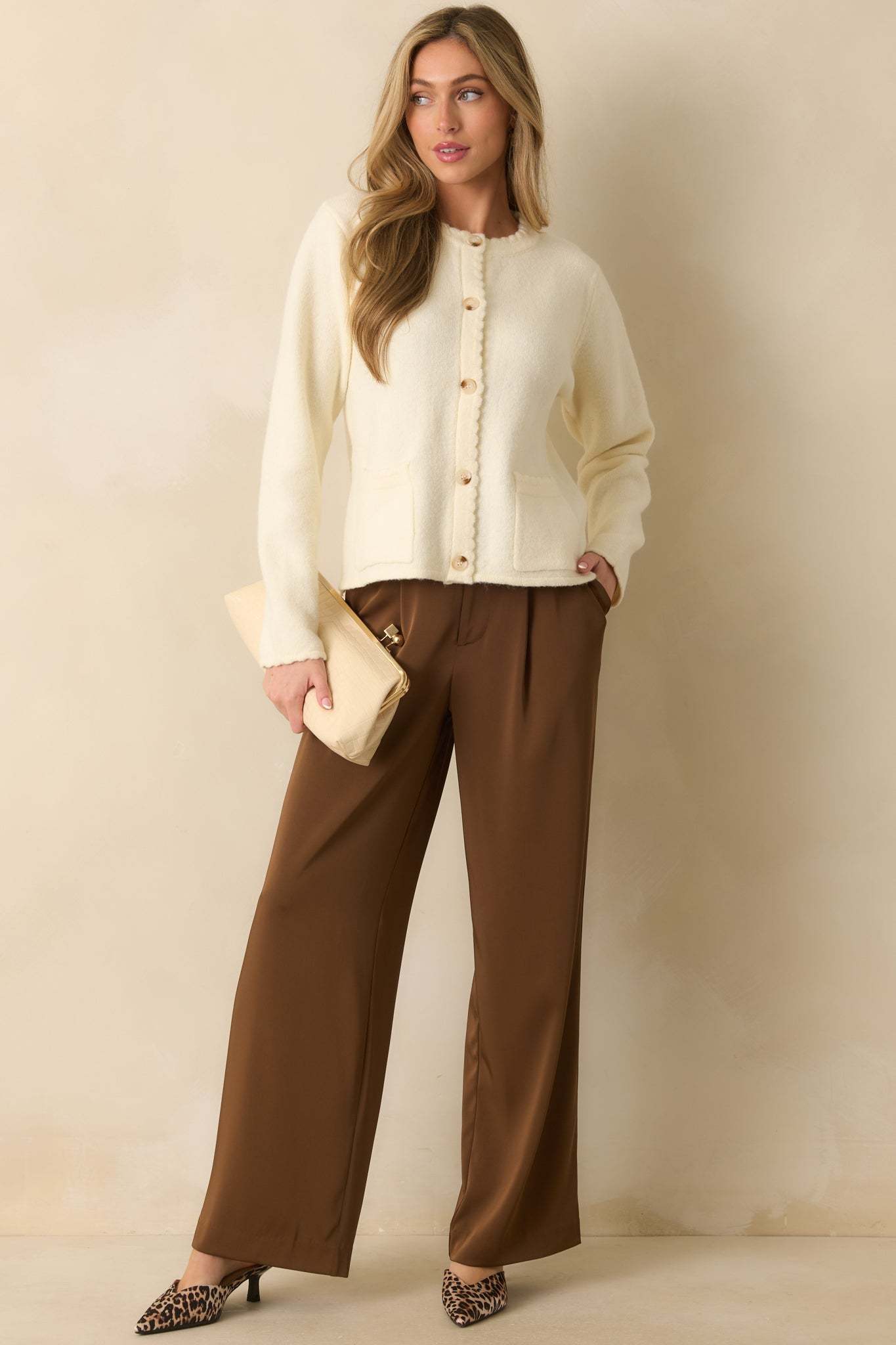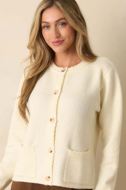 Take Another Chance Ivory Knit Scallop Hem Button Front Cardigan